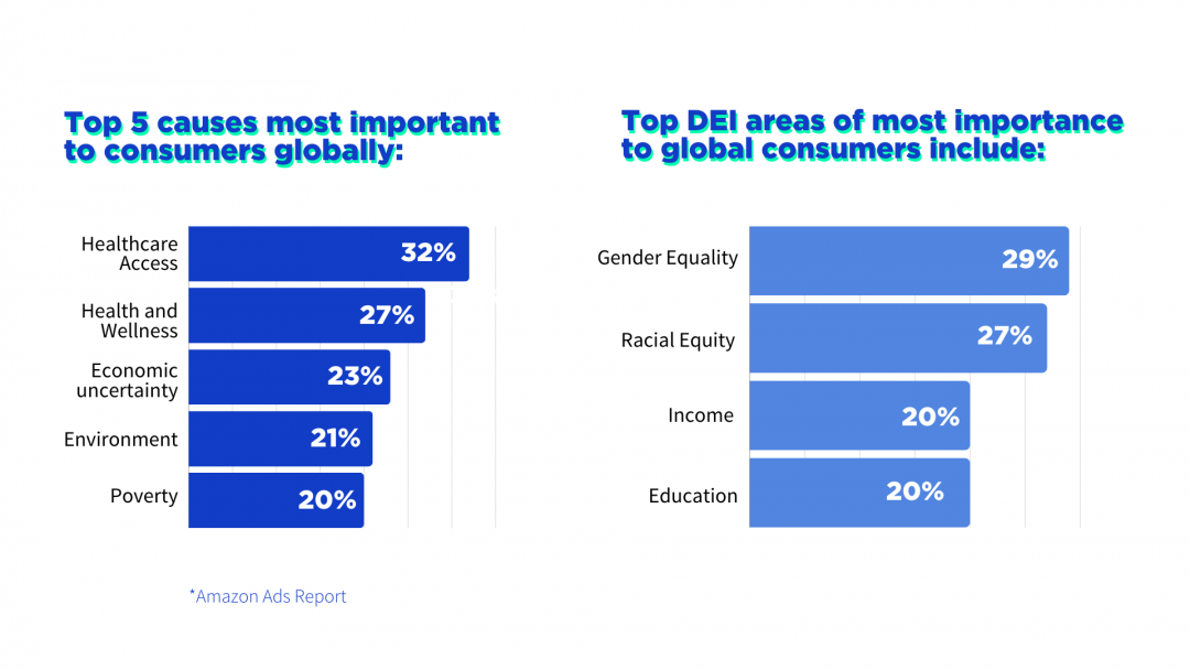 We pulled some data from the recent Amazon Ads report, to shed more light on how global consumer trends are shaping brands’ actions. Because this is no secret anymore. In today’s interconnected world, global consumers are not just looking for products. They’re seeking brands addressing their perceptions, aligning with their values and actively contributing to social and environmental causes.