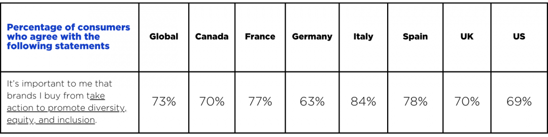 And another global consumers trend: a significant 52% of consumers believe that brands should demonstrate their commitment to DEI through broader actions and support beyond their core offerings. This sentiment emphasizes the need for brands to go beyond token gestures and integrate DEI principles into their entire organizational culture and operations.
